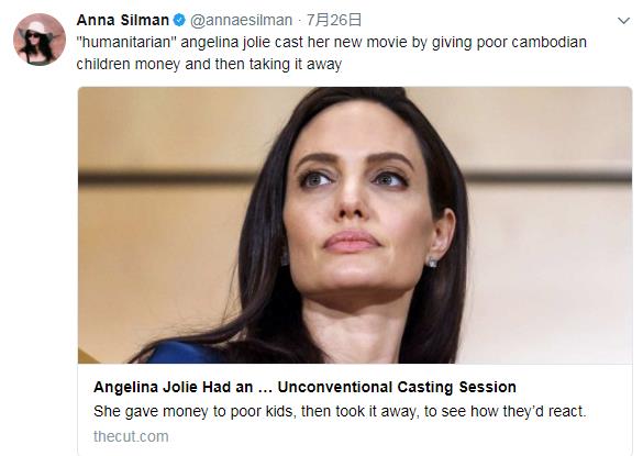 “拥有人道主义精神”的朱莉是通过这种方式选角的:给贫穷的柬埔寨孩子一笔钱,然后将钱拿走。