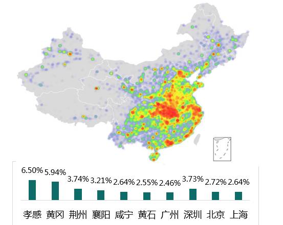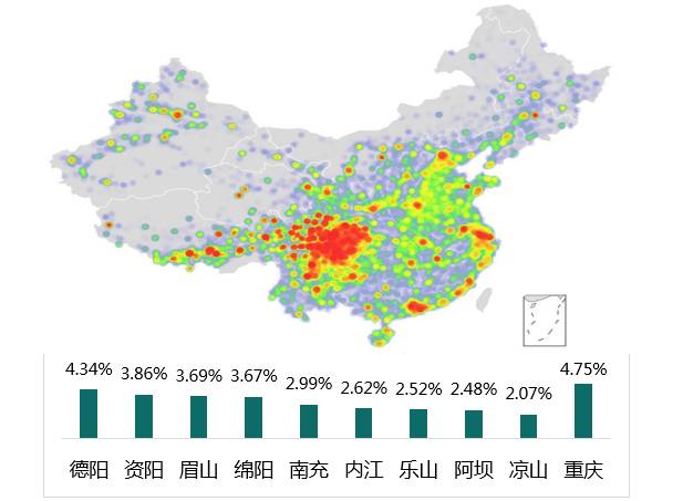 以武汉市为例。武汉市第一季度新流入常驻人口主要来自于湖北省内部城市,尤其是孝感和黄冈,但从深圳、北京、上海、广州等一线城市流入武汉的人口也较多,占比达到11.55%。而成都市第一季度常住人口的主要来源除了重庆市外均为四川省内部城市。