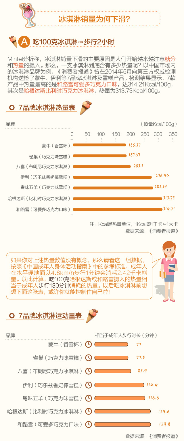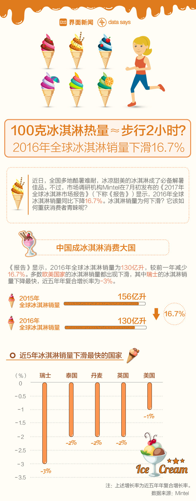【图解】100克冰淇淋热量≈步行2小时?2016年全球冰淇淋销量下滑16.7%