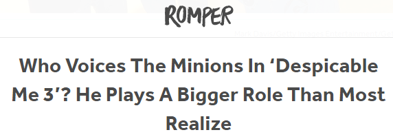 从另外一个角度看电影,除了形象激萌之外,小黄人的声音也是他们走红的一大因素,那么在戏中总抢主角风头的小黄人是谁来配音的呢?我们可以从母亲社区Romper的这篇文章中找到答案。