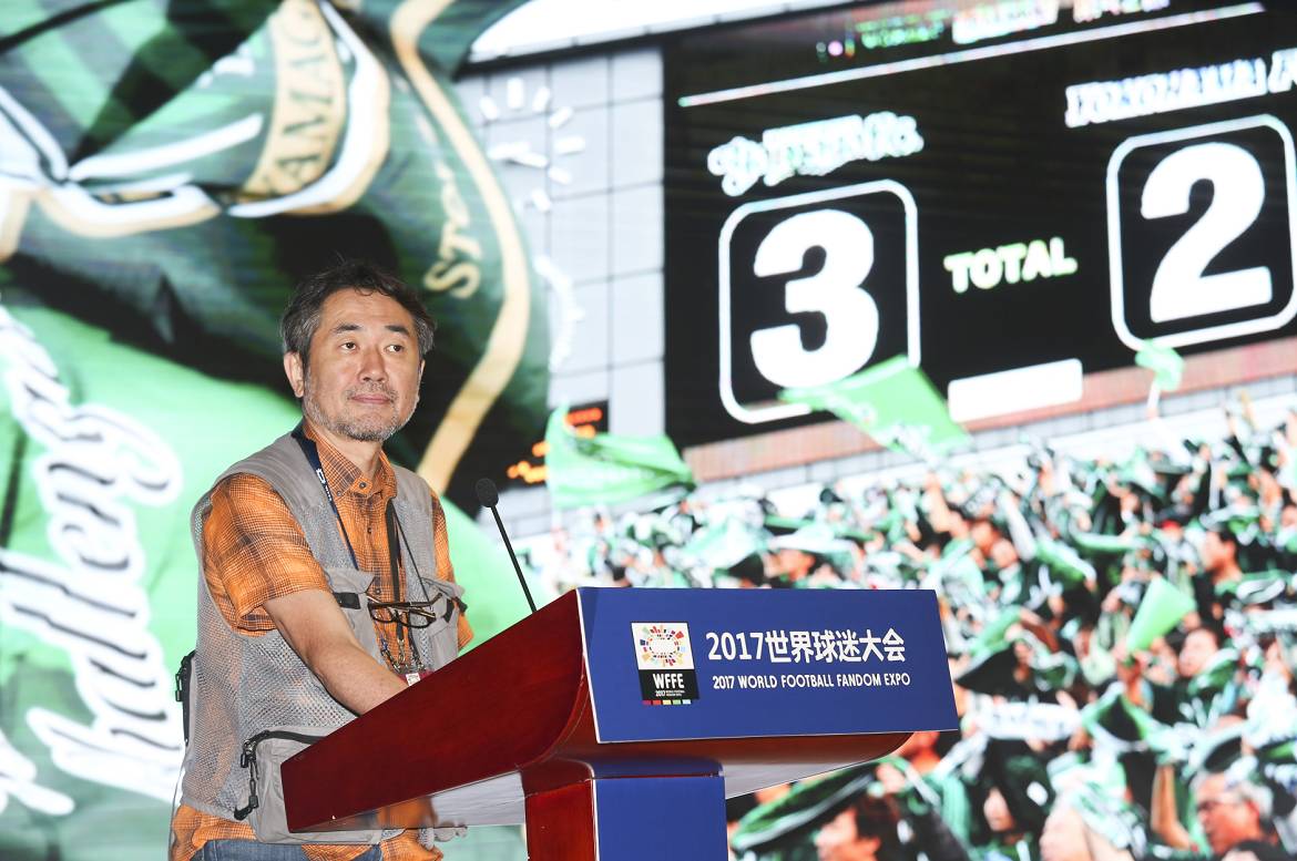▼日本著名足球记者宇都宮徹壱以产业人和球迷的双重身份参加了本次大会