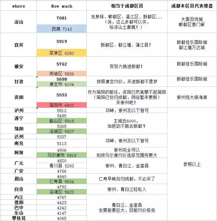 根据成都各县市六月的房价数据,小编为你整理了与你家乡房价相当的区域。如与你家乡实际情况有出入,小编...概不负责~