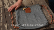 假如这东西在真实世界里也存在的话,除了拿来切一条船,这种超高强度的纤维材料还可以用在许许多多的地方,比如来制作一只刀枪不入、防盗防抢的旅行背包。