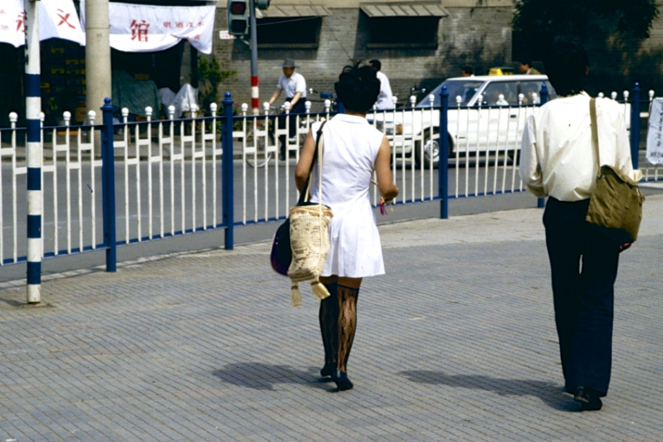 北京火车站附近,穿连衣裙的姑娘;拍摄于1988年夏季。【摄影:michel peterlin】