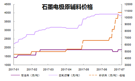 此外,针状焦涨价带来的成本上涨也导致负极材料价格的整体上扬。中科电气(300035.SZ)收购的子公司星城石墨是石墨负电极的生产厂商。7月12日,中科电气公告预计上半年将实现净利润同比增长70%—100%,业绩大幅预增的主要原因是控股子公司星城石墨纳入合并报表范围。子公司石墨负电极业务对该公司业绩有较大影响,若后期石墨负电极价格应势上涨,将为公司未来业绩提供良好支撑。