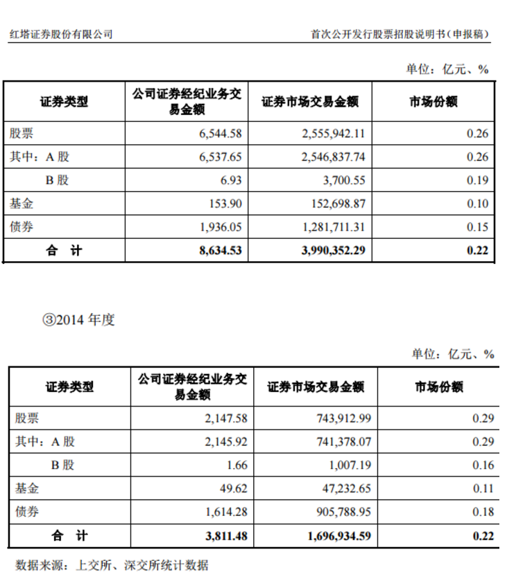2014-2016 年度,我国证券市场股票基金平均佣金费率分别为 0.66‰、0.50‰、0.38‰。也就是说,红塔证券的佣金率高于市场平均佣金多达一倍。