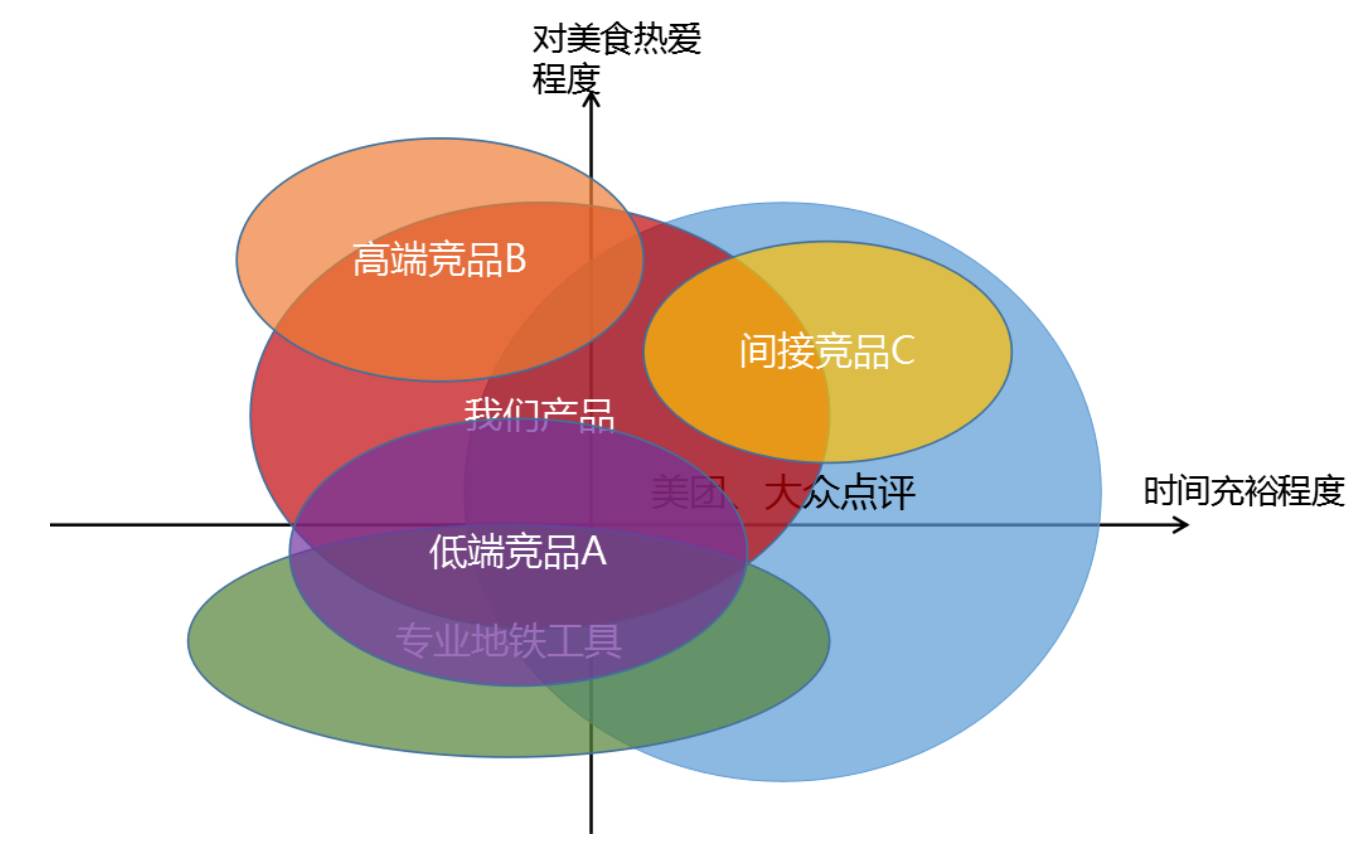 低端直接竞品即用户群工具属性明显,只是搜地铁站,选择美食的用户,无明显其他行为;高端竞品即注重社交、UGC为起点,逼格高的搜寻美食工具——这部分开始很难,工作量巨大,且较脱离大众主流群体。