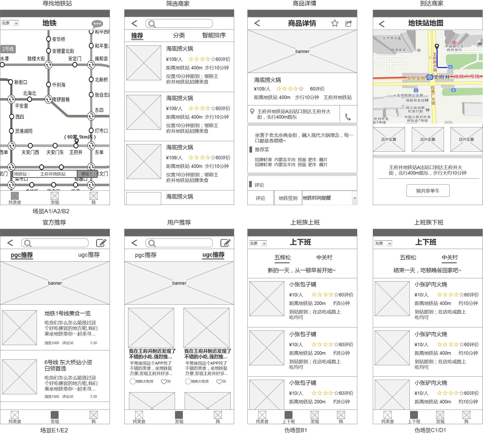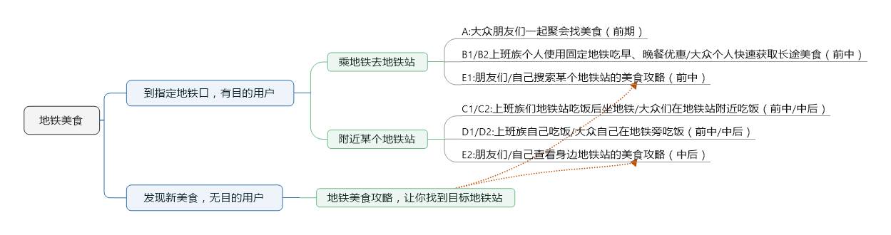 我在上面通过A、B、C、D、E这5个主要场景及分支,知道了地铁美食APP的应用场景范围。