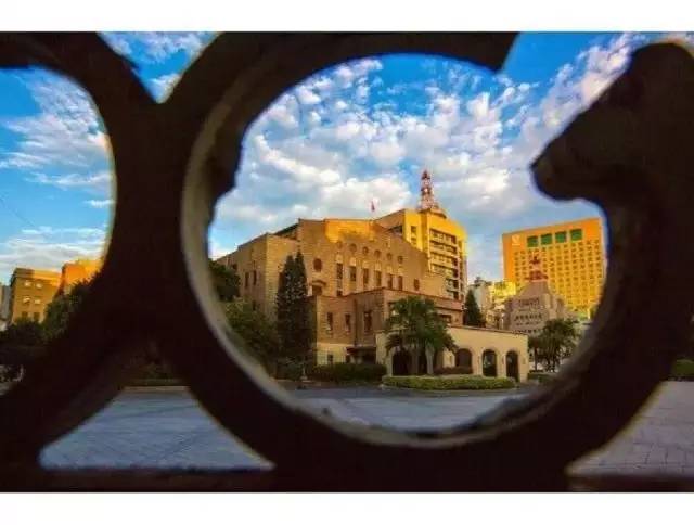 如果说万物都有幻灭之时,那可能历史算是永恒吧。这里,在近景的花窗中,他窥视着清晨中山堂上的蓝天白云,注视着蓝天白云下肃穆的中山堂。历史的厚重感由花窗传递,溅起思古的涟漪,引发更多的哲思。