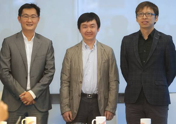 2013年9月16日腾讯入股搜狗,腾讯董事长马化腾、搜狗CEO王小川、搜狐CEO张朝阳合影留念。