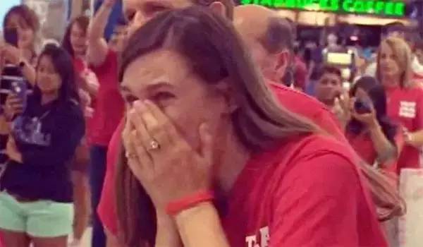 视频截图:喜极而泣的Audrey,紧紧地抱起Lucy