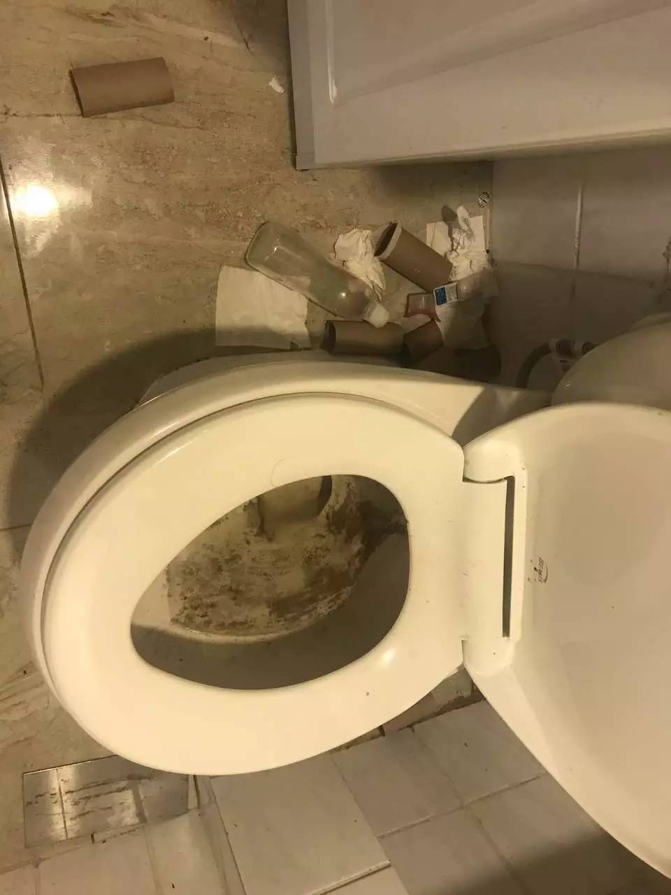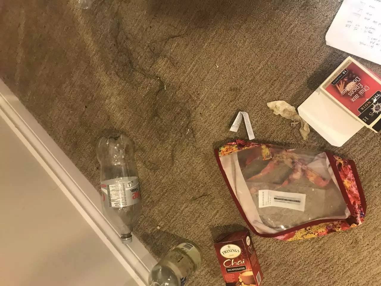 根据女主角合租室友反映,女主角在失踪事件后不久便搬走,但她的房间已经不能仅仅用“满屋狼藉”来形容了。地毯上不但到处都是不明液体,还堆满了垃圾,女主角使用的厕所目测已脏到了只能炸掉的地步(下图)。