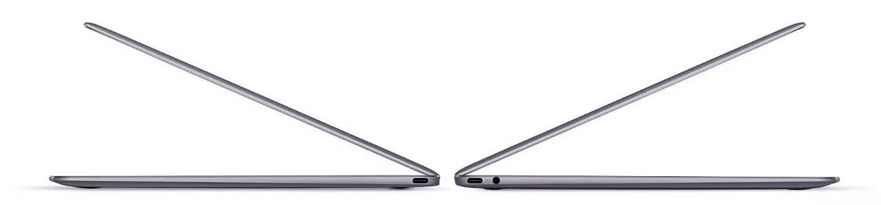12.5mm的机身厚度决定了MateBook X在接口配置上必然存在妥协,左右两侧一共配备了2个Type-C接口和一个耳机麦克风接口。Type-C接口均支持高速数据传输,不过只有左侧的Type-C接口能充电,而右侧则是“阉割版”Type-C接口,这样一来就会限制某些使用场景。