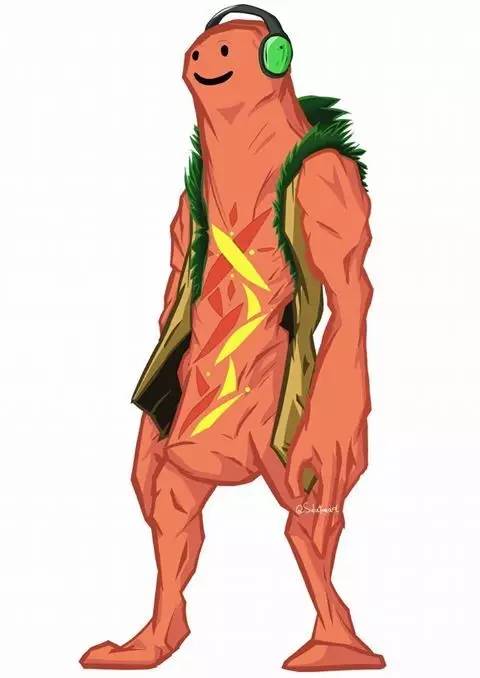 包贝尔同款光头+八字眉、青芥版头戴式耳机、肚皮上抹着番茄酱和黄芥酱,双手跟着律动不停摇摆,时不时来个鬼步旋转,Dancing Hot Dog原本只是Snapchat的一款滤镜,但却因为有蠢又萌,不断被网友恶搞,成为网红。