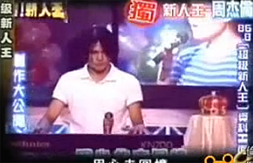 在那场表演中,周杰伦演砸了,因为他伴奏的音乐,让和他配对的歌手唱起来非常难听,场下一片嘘声。站在评委旁边的吴宗宪顺手拿过歌谱看了看,就大吃一惊。因为周杰伦写的歌谱不仅非常复杂,还非常工整,而台上的周杰伦,总是很害羞的低着头,说话也口齿不清让人听不清他在说什么。出于好奇,他把周杰伦邀请到自己的音乐公司上班。