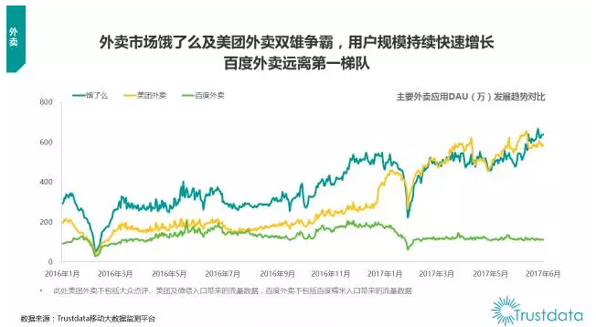 3、用户版不是唯一的订单入口:百度外卖还有糯米、手百入口,饿了么有支付宝入口,美团外卖还有美团、定评、微信入口(微信的流量最牛逼,遥遥领先其它)。