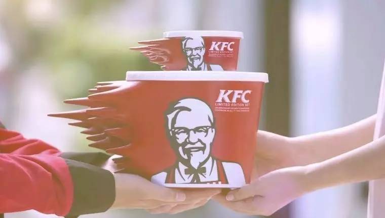 针对年轻人这种“想要就马上要”的消费心态,商家们当然首先要把“快”升华成品牌特点。除了通过提升供应链效率,缩短每个服务环节的时间成本,还有没有讨巧、卖乖的套路?泰国的肯德基很机智,他们突出“快”的方式是,把产品外包装的盒子设计成了动态的光环,但凡看到的人,都会惊讶于一种“快到闪电”的肯德基新特色。