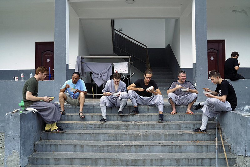 少林寺为他们提供了简单的食宿,下午训练后,他们聚在一起用餐。