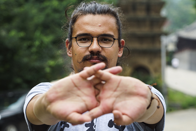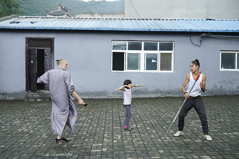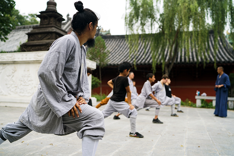 少林寺无遮大会上,一群身着灰色僧袍的外国人格外显眼。他们来自世界各地,加拿大、越南、意大利……有些在来到少林寺以前,已经跟随当地交流中心的武僧练习过功夫,还有些人则是不远万里前来从零开始学起。这些想学少林功夫的外国人会在寺里停留一到两个月,通常他们每天要接受两次训练,每次两个小时。其余时间,他们回到少林寺统一提供的宿舍里自由活动。