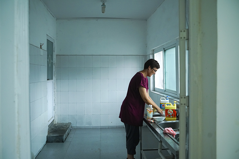 饭后,他们需要自己在水房洗碗。照片中的Cathrin来自德国,但她一直在越南生活。少林功夫对她来说,不仅仅只是强身健体,她说功夫还会让她注意力更加集中。