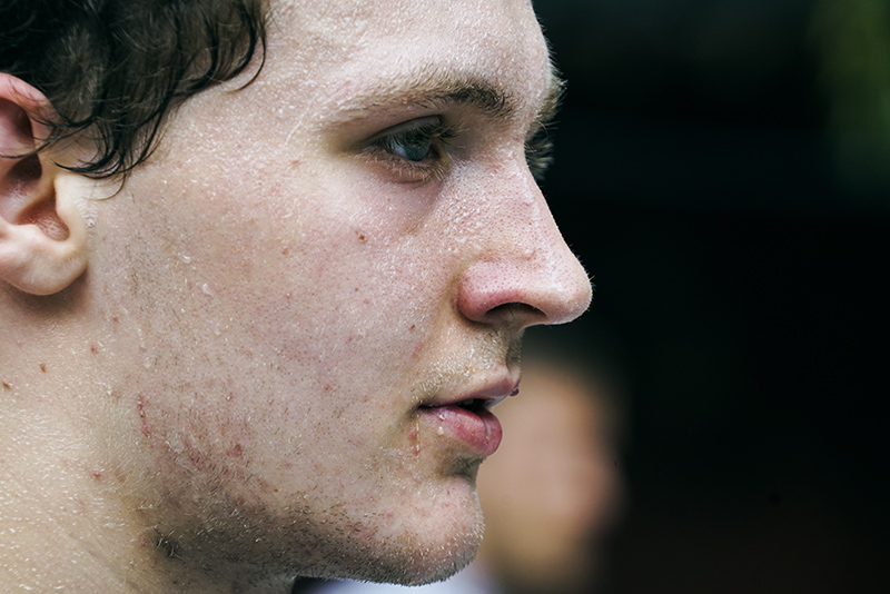 训练中学员脸上开始沁出汗水。