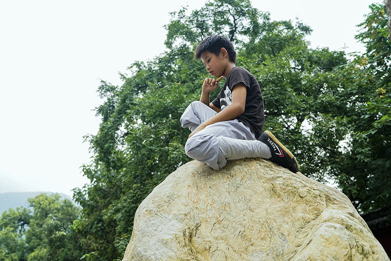 课间,Floridn爬到了训练场旁的石头上。
