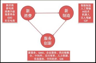 服务创新能力是连接未来新经济两大核心场景“消费”和“制造”的重要力量,也构成了未来新经济三驾马车的重要一环。