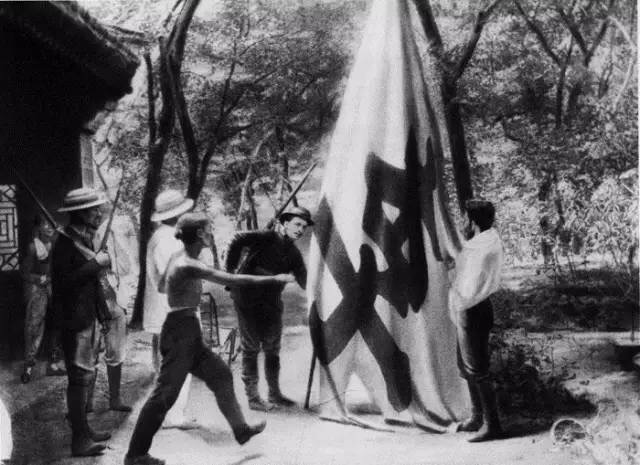 清军在法国使馆外面修筑了工事,挂起两面旗子,开始装腔作势地围攻。伯希和在两名法国水手的帮助下,点一把火把工事给烧掉,趁着清兵救火的工夫,又用铁钩勾下了一面绣着“李”字的大旗。就是下面这个:清军统领荣禄的右军军旗。