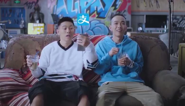 支付宝这次邀请到说唱歌手MCJin欧阳靖和Tizzy T,一位(疑似)是节目里带着面具的神秘嘻哈侠,另一位则凭借帅气活力的外形,在出场rapper中一度拥有最多微博粉丝,两者都是《中国有嘻哈》的话题人物。而这首说唱歌曲的歌词也由两人一起完成,内容则主打支付宝的无现金概念。