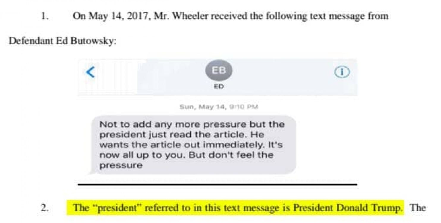 而且,根据他在诉状里提供的电话记录、短信等资料,包括白宫前发言人斯派塞在内的白宫多位要员,甚至特朗普本人对此都知情,并且直接推动了这条新闻面世。