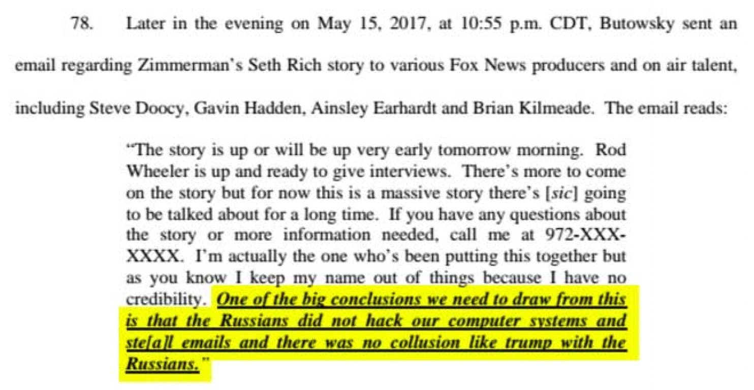 根据惠勒的诉状,福克斯这条受到包括里奇家人在内质疑的新闻,意在表明去年大选期间民主党全国委员会泄密一事与俄罗斯无关,从而转移对特朗普政府“通俄”调查的关注。
