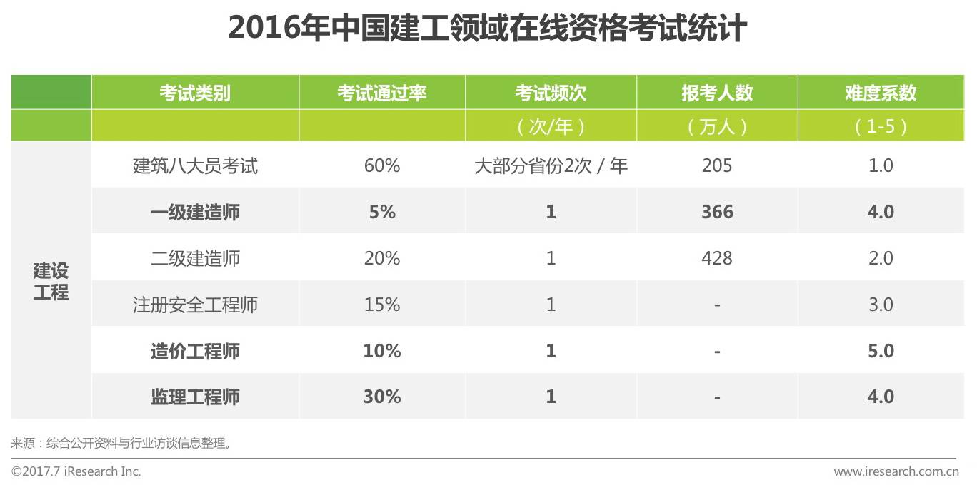 建工:建工领域对就业人员素质要求高,考试通过率较低