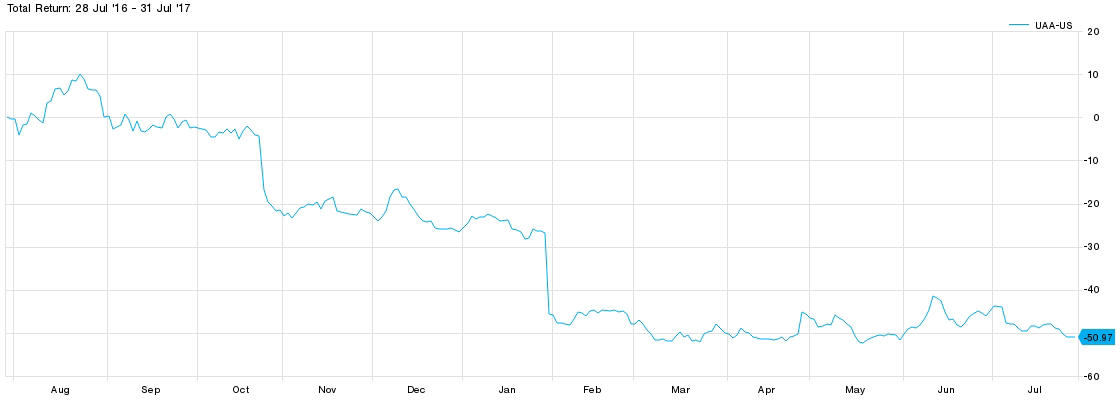三个月前,Under Armour迎来2005年上市以来的首次季度亏损,8月1日,美国品牌发布的2017财年第二季度财报显示其颓势依旧。