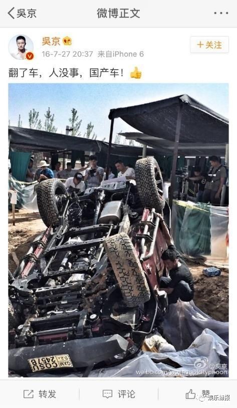 吴京在采访中表示,为了宣传国产车的品质和性能,剧组不惜花费了半年的时间将这款车千里迢迢地运到非洲拍摄。而在电影拍摄过程中的一次翻车事故,更是让吴京在微博中为它点赞。