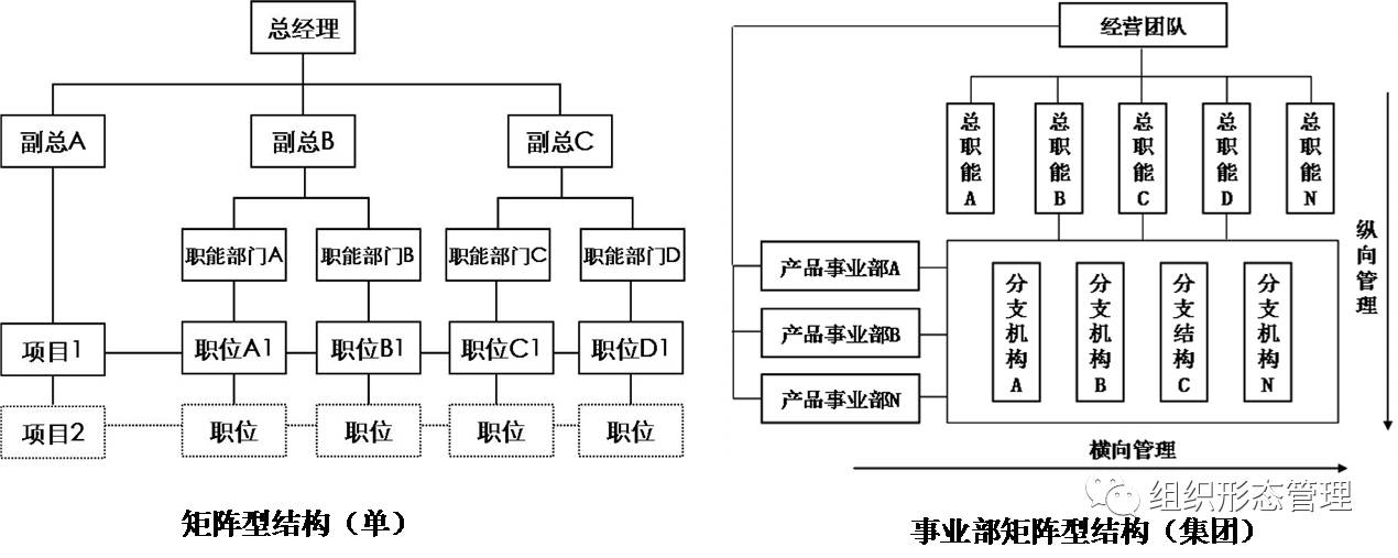 在中国企业转型过程中,直线职能型结构将转变为矩阵型结构,事业部型结构将转变为事业部矩阵型结构,这是传统企业转型的必由之路,所有摆脱传统“标签”的企业都已经采取了矩阵型结构,这在我以前的文章中有大量的介绍。