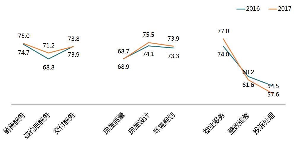 图:2016-2017年中国城市居民居住满意度关键指标调查结果