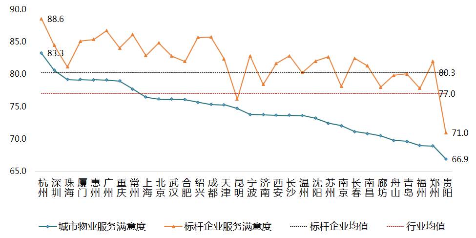 图:2017不同城市及标杆企业物业服务满意度调查结果
