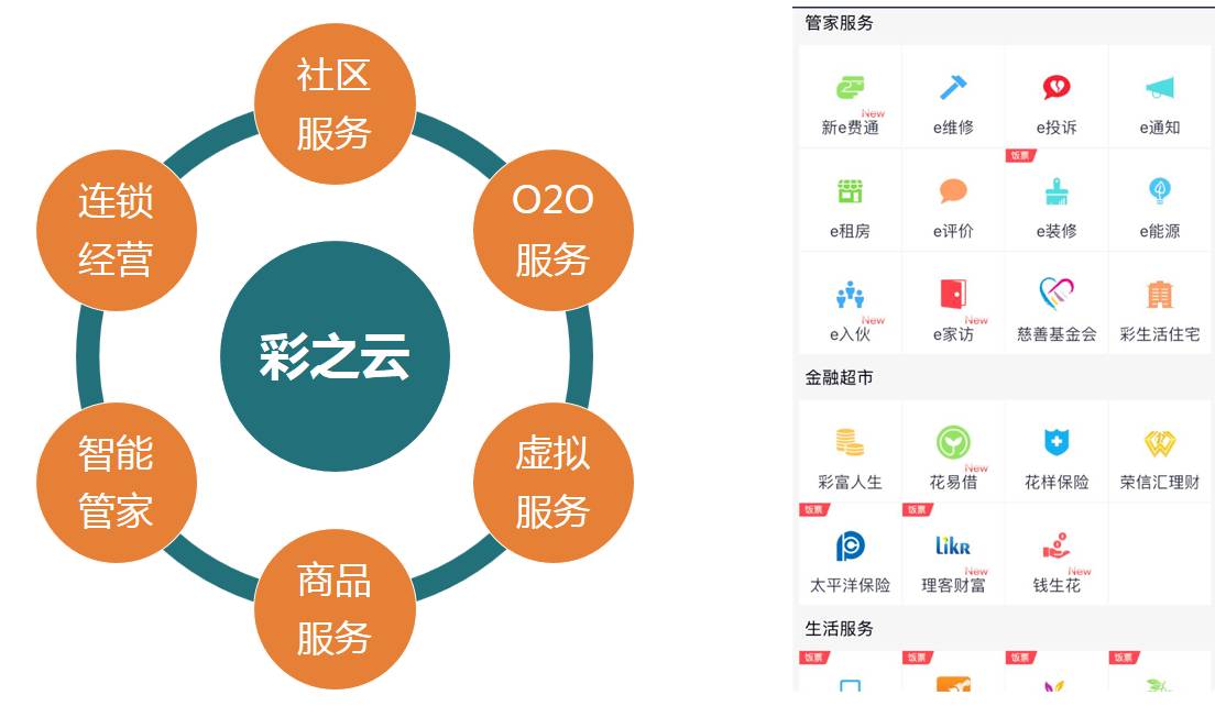 彩生活APP目前上线的服务包括生活服务E维修等、房屋服务E租房等、金融服务E理财等,旨在打造一公里社区生态圈,涵盖衣、食、住、行、娱、购、游等在内的各领域商户服务资源。