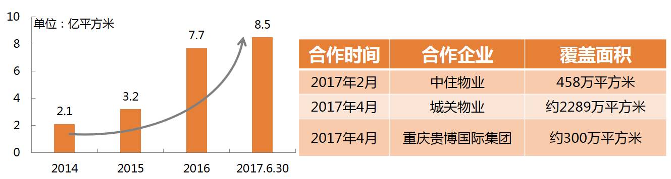 据中国指数研究院数据显示,截止到2017年6月30日,彩之云平台服务面积目前已达到8.5亿平方米,为分布于210多个城市的3000多个项目提供服务。