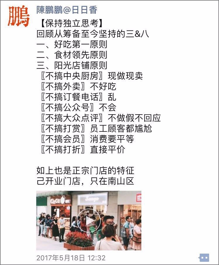 不提供 Wifi ,不预约、不留座、没有会员、不做促销......这是在性价比战略下,陈鹏鹏做出的选择,是与顾客体验之间的一场博弈。