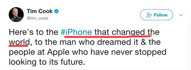 苹果CEO Tim Cook近日在自己的Twitter上称,10周年的iPhone结合了几代人的梦想,它将改变世界,我们一起期待它的到来!