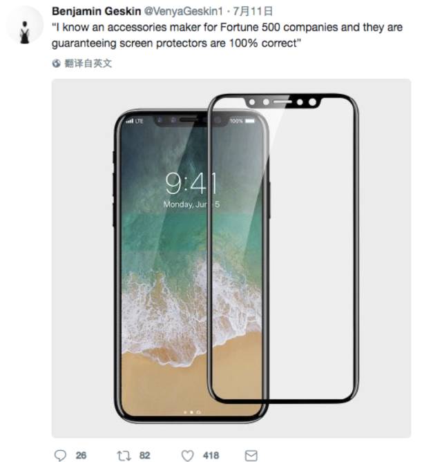 (Benjamin Geskin爆出的iPhone8真机上手照)