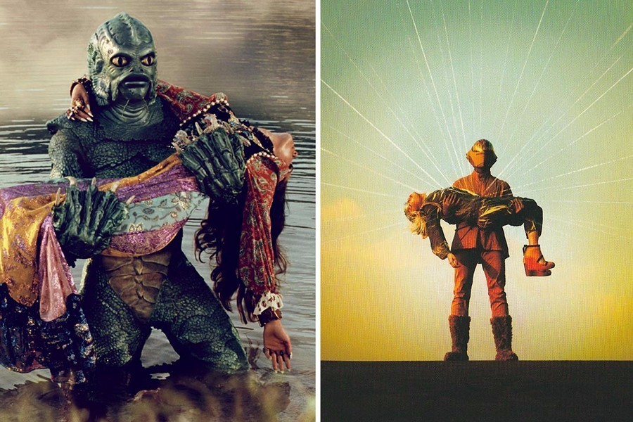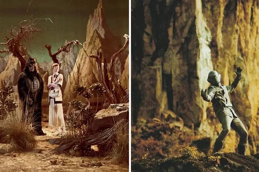 模特们身着品牌 2017 秋冬最新款与外星人,机器人,甚至大猩猩演起了对手戏。