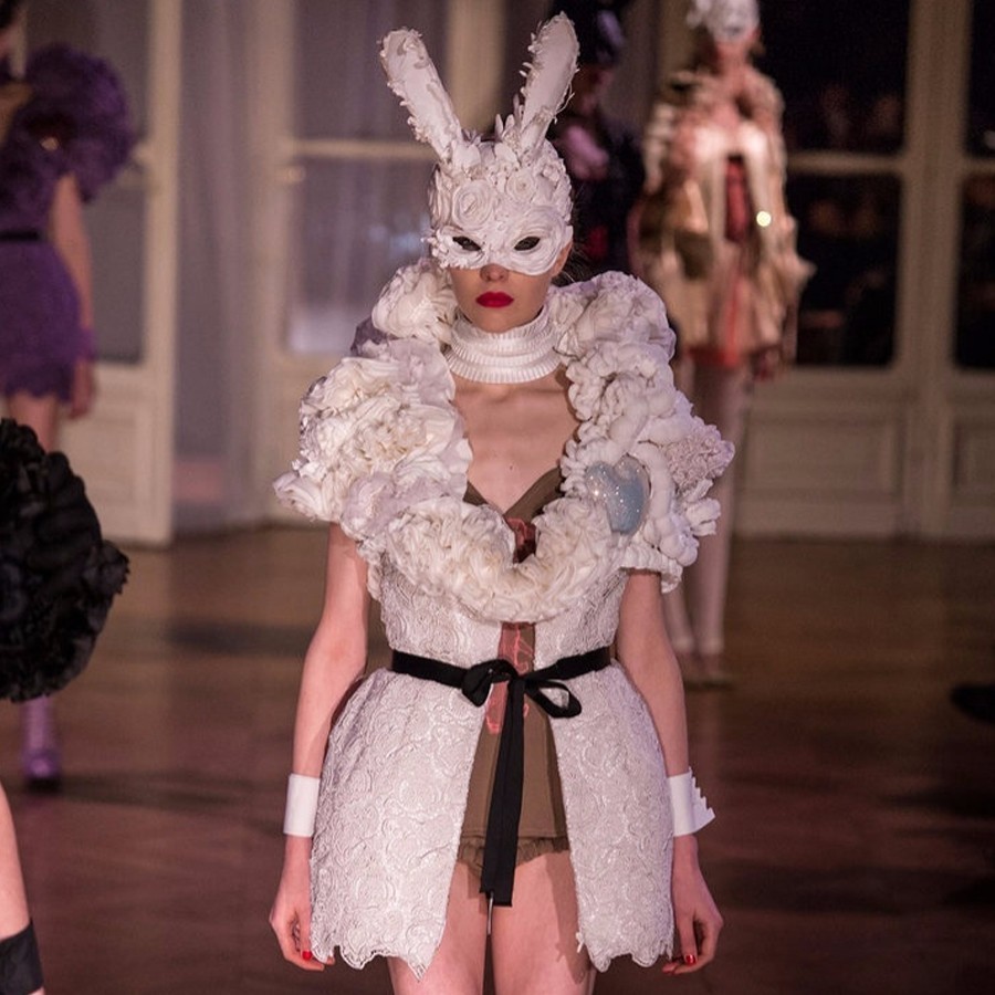 看到了川久保玲的影子? 据说他是在看了 Comme des Garcons 的巴黎处女秀,全是破烂的乞丐装,大家都评论为 “ugly,but beautiful”。UNDERCOVER 的“BB” 系列才因此诞生。