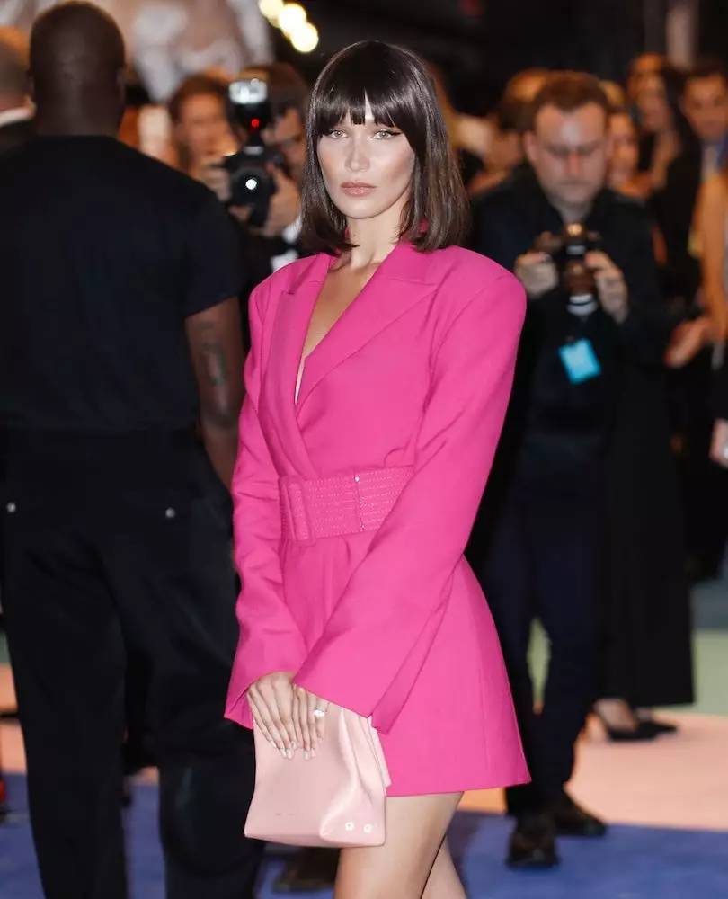 Bella Hadid 穿上 OFF-WHITE 粉红色套装出现 2017 CFDA 颁奖典礼红地毯。