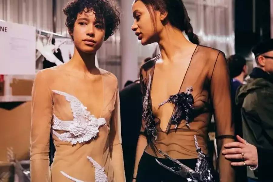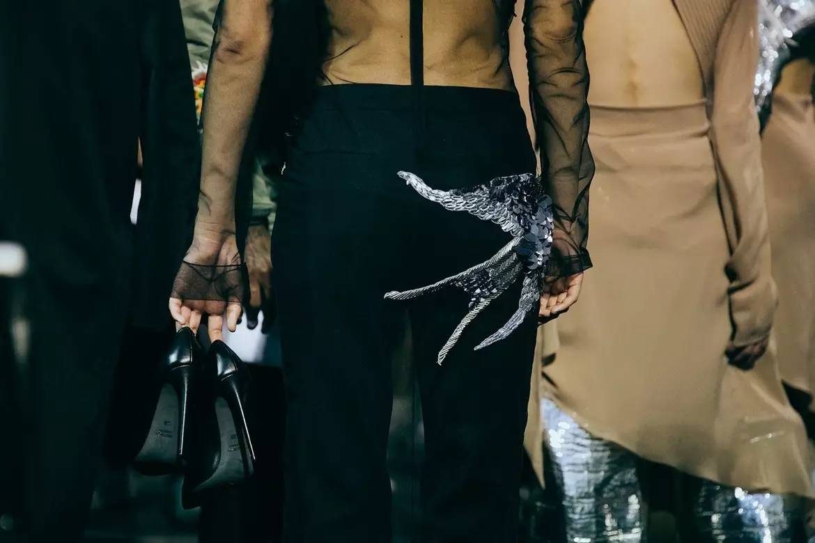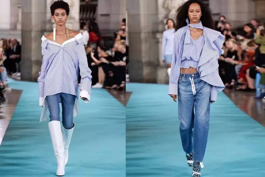 透视,刺绣,牛仔撕边,考究的做工全是出自高级时装的剪裁和设计手法,这不禁让人怀疑是我们认识的 OFF-WHITE 吗?其实,品牌早已默默向 high fashion 迈进。