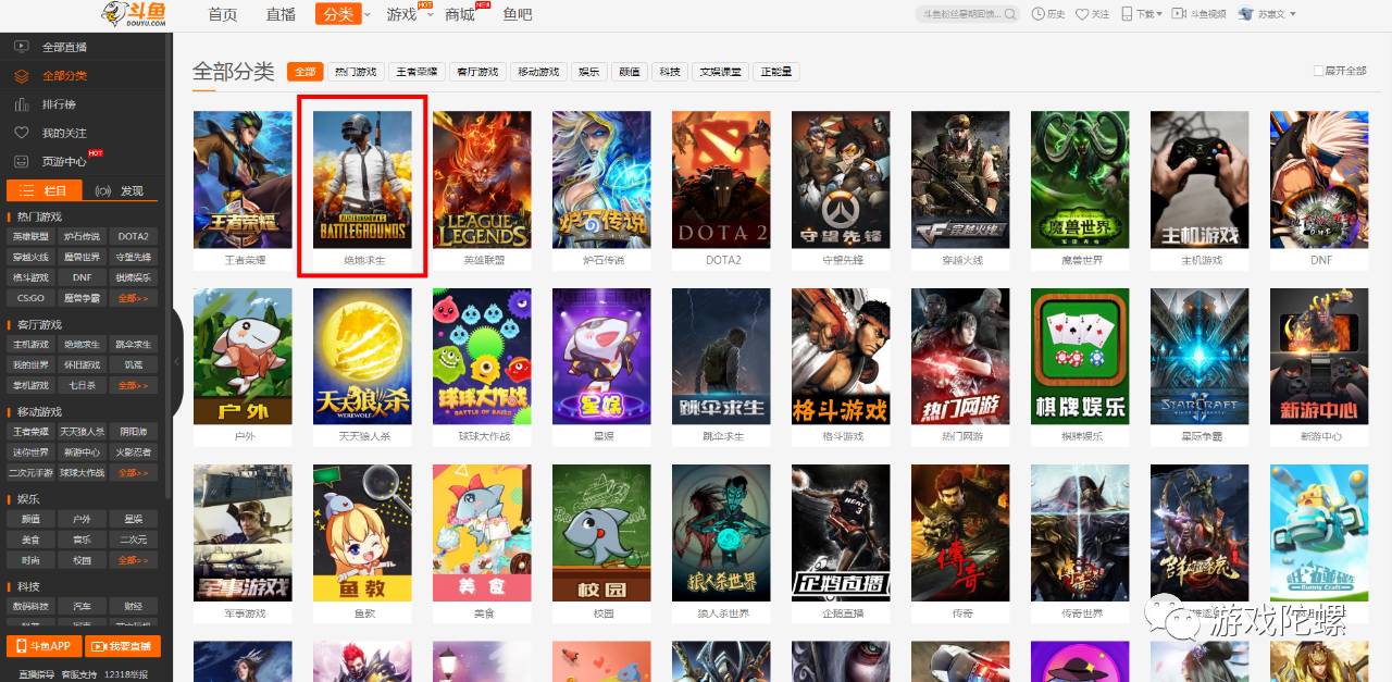 图:打开直播平台,除了《王者荣耀》外,排第二的就是《绝地求生》的直播了