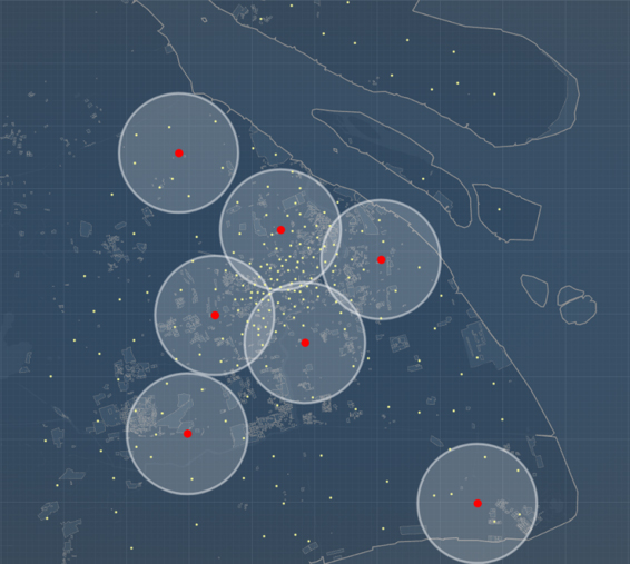 我们做个假设,如果上海某商家准备开50家门店,客户群针对所有人群。那么商家要开在哪里 ?如何分布最优?
