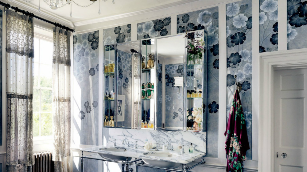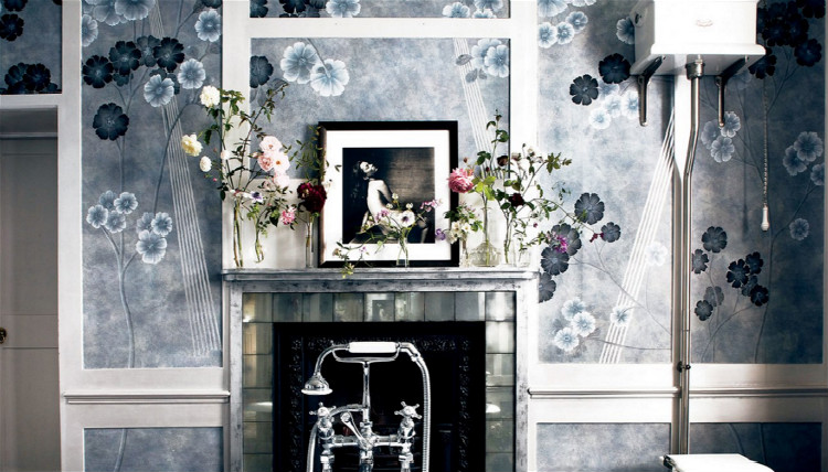 但对整个空间的格调起到决定性作用的却不是这些,而是那大片大片的墙纸。Kate Moss家的墙面几乎都覆盖着银蓝色的海葵,花瓣有水墨画的通透感,这些图案都是按照她的需求定制的,根据古希腊的传说,海葵象征着好运气。