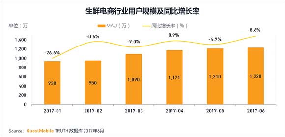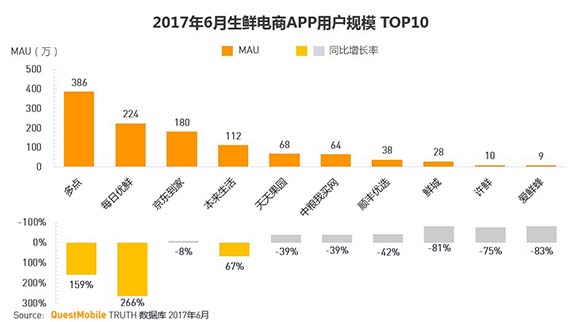根据市场调研公司Quest Mobile发布的夏季移动App报告,作为电商里的细分行业,生鲜电商发展势头良好,目前行业规模已经突破1000万。